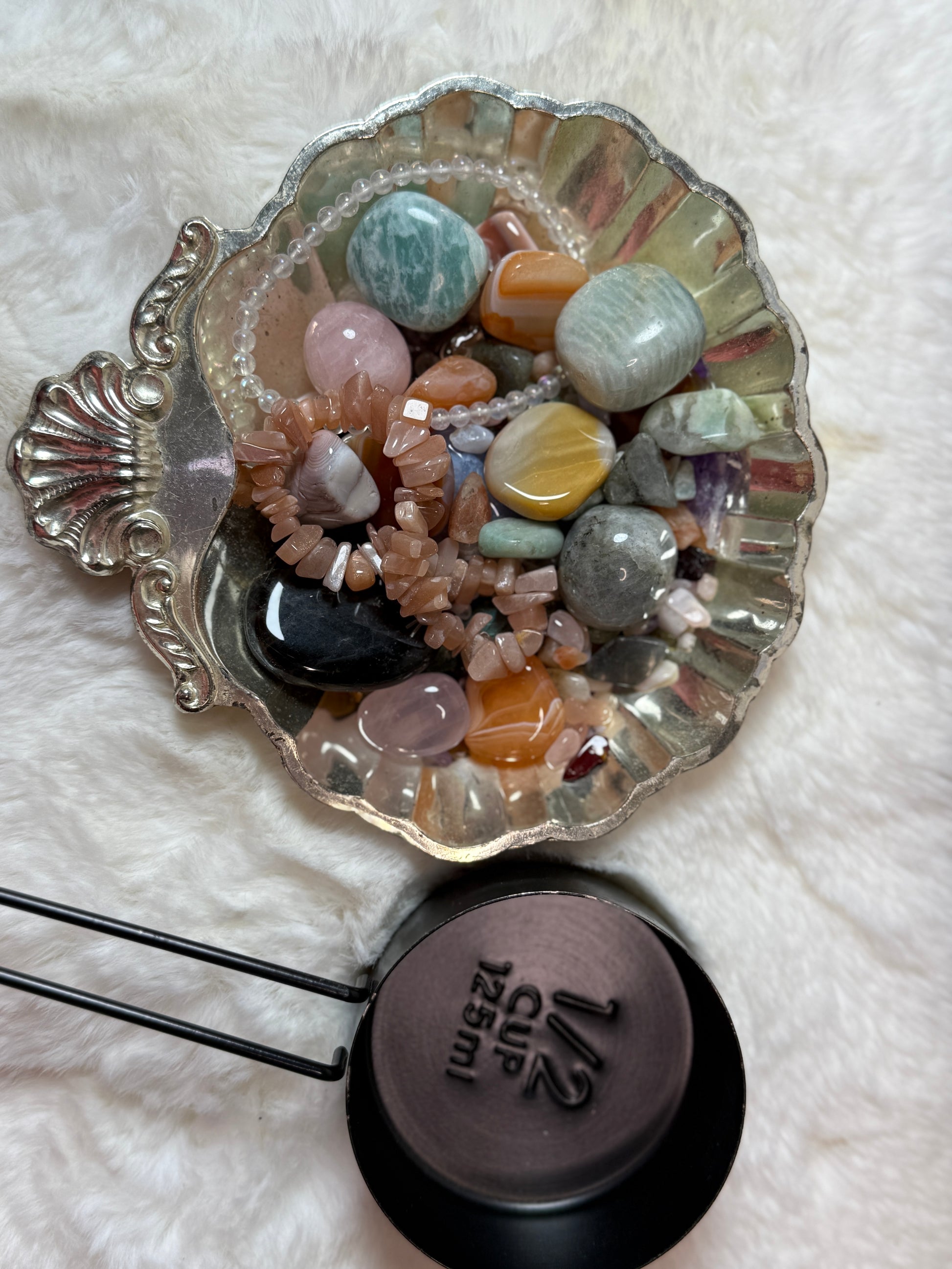 Each scoop is intuitively crafted with high-vibe crystals, including: