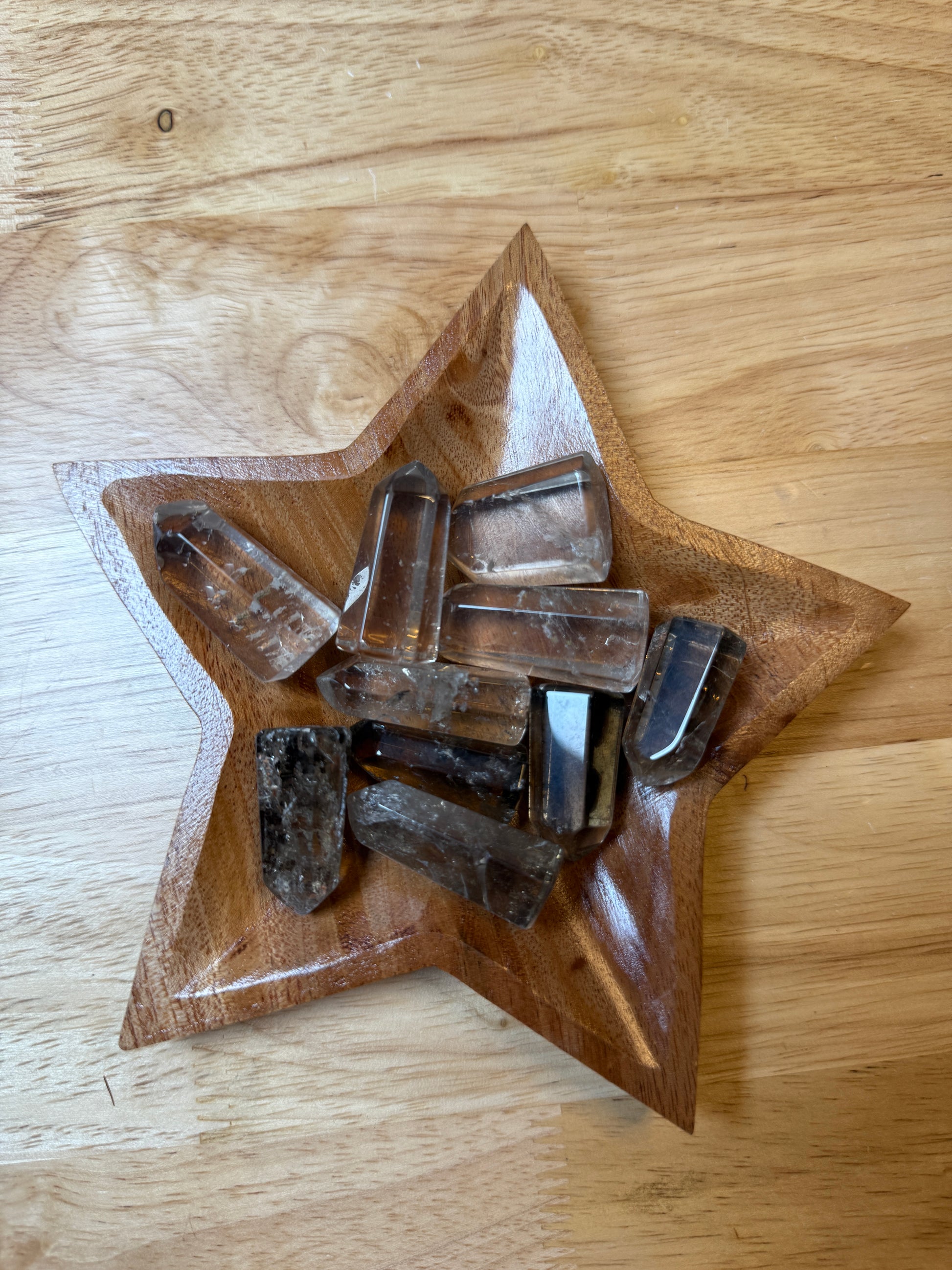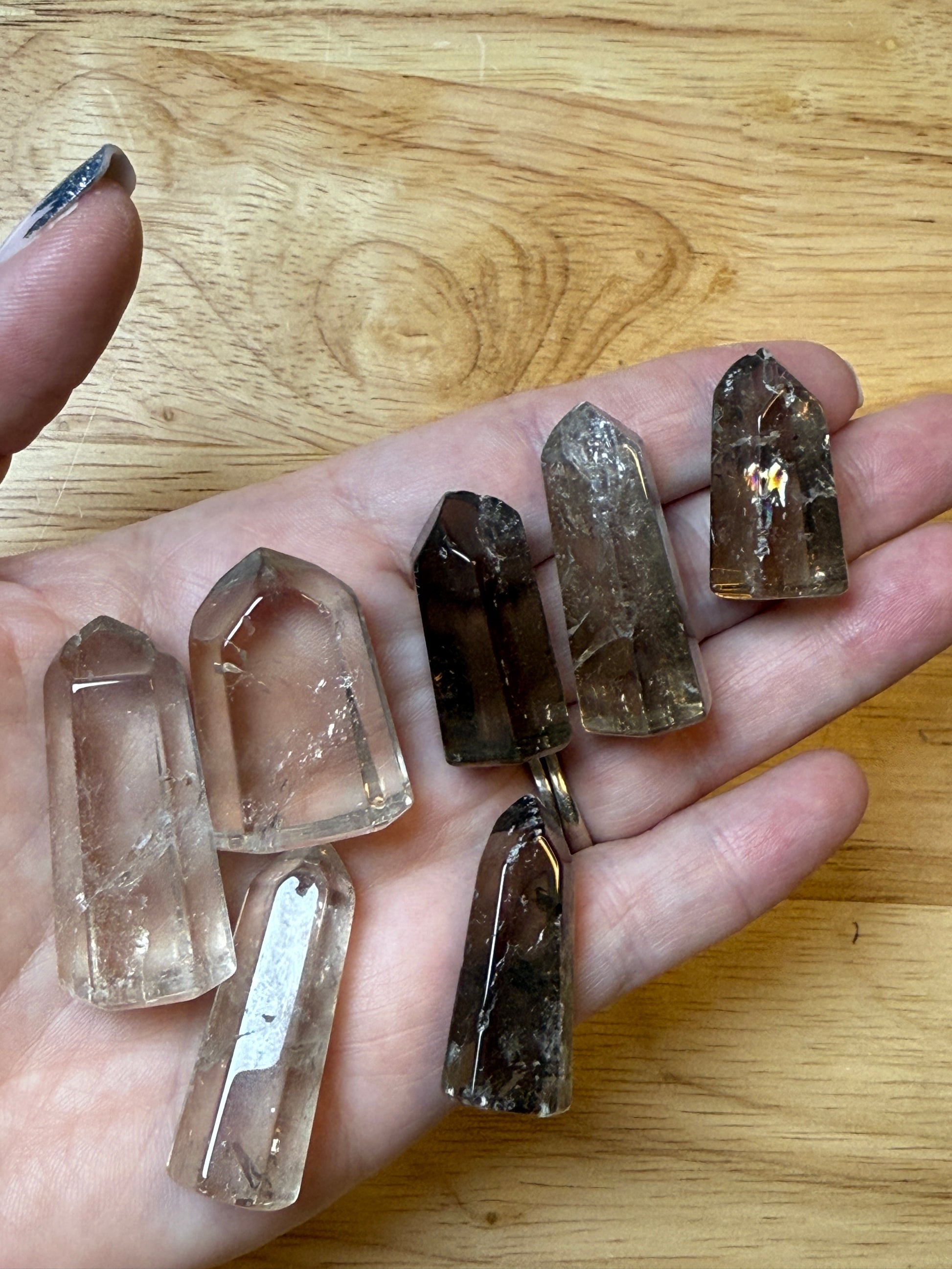 This listing is for ONE mini quartz tower. Each tower is cut from beautiful smoky quartz stone. The towers are free standing.