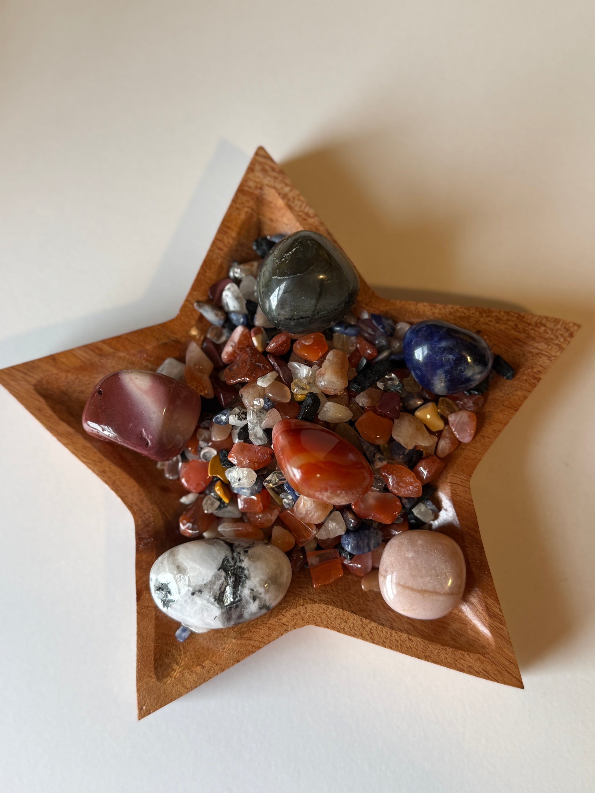 **Rainbow Moonstone** — Intuition, feminine alignment, new beginnings, connection to